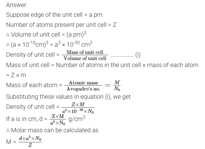 Explain how you can determine the atomic mass of an unknown metal if you know its mass density and the dimensions of unit cell of its crystal. (All India) 2011
