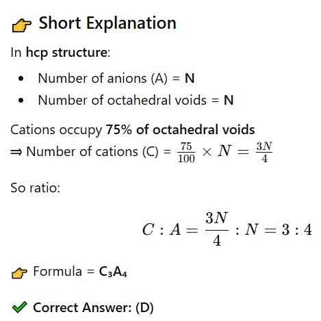 ✔ Assertion (A): Correct It describes Schottky defect → equal number of cations and anions are missing → electrical neutrality maintained