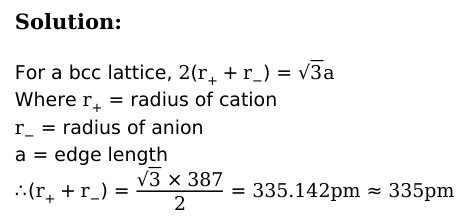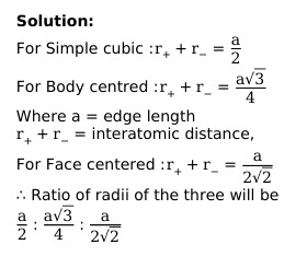 8. The ionic radii of A⁺ and B⁻ ions are 0.98 × 10⁻¹⁰ m and 1.81 × 10⁻¹⁰ m. The coordination number of each ion in AB is [NEET-I 2016]