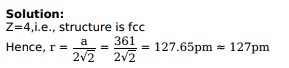 Face diagonal = √2 a Also, along face diagonal = 4r