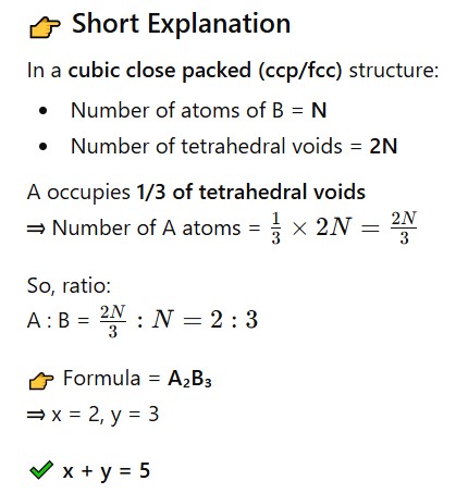 32. How many number of tetrahedral voids are formed in 5 mol of a compound having cubic close packed structure? [PYQ 2023]